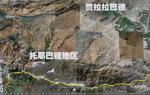 被美国军用的爆破弹 BLU-82 在阿富汗的 矿山区可能放散铀矿 尘。 جلال آباد و المنطقة الحرب جنوب جلال آباد |
